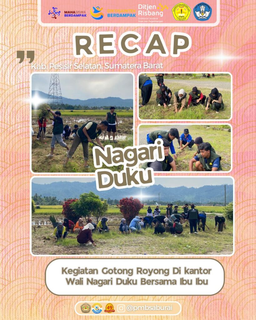 Semoga kegiatan ini dapat mempererat tali silaturahmi, meningkatkan rasa tanggung jawab bersama, serta memberikan dampak positif dan berkelanjutan bagi seluruh masyarakat Tarusan, Nagari Duku, Sumatera Barat.